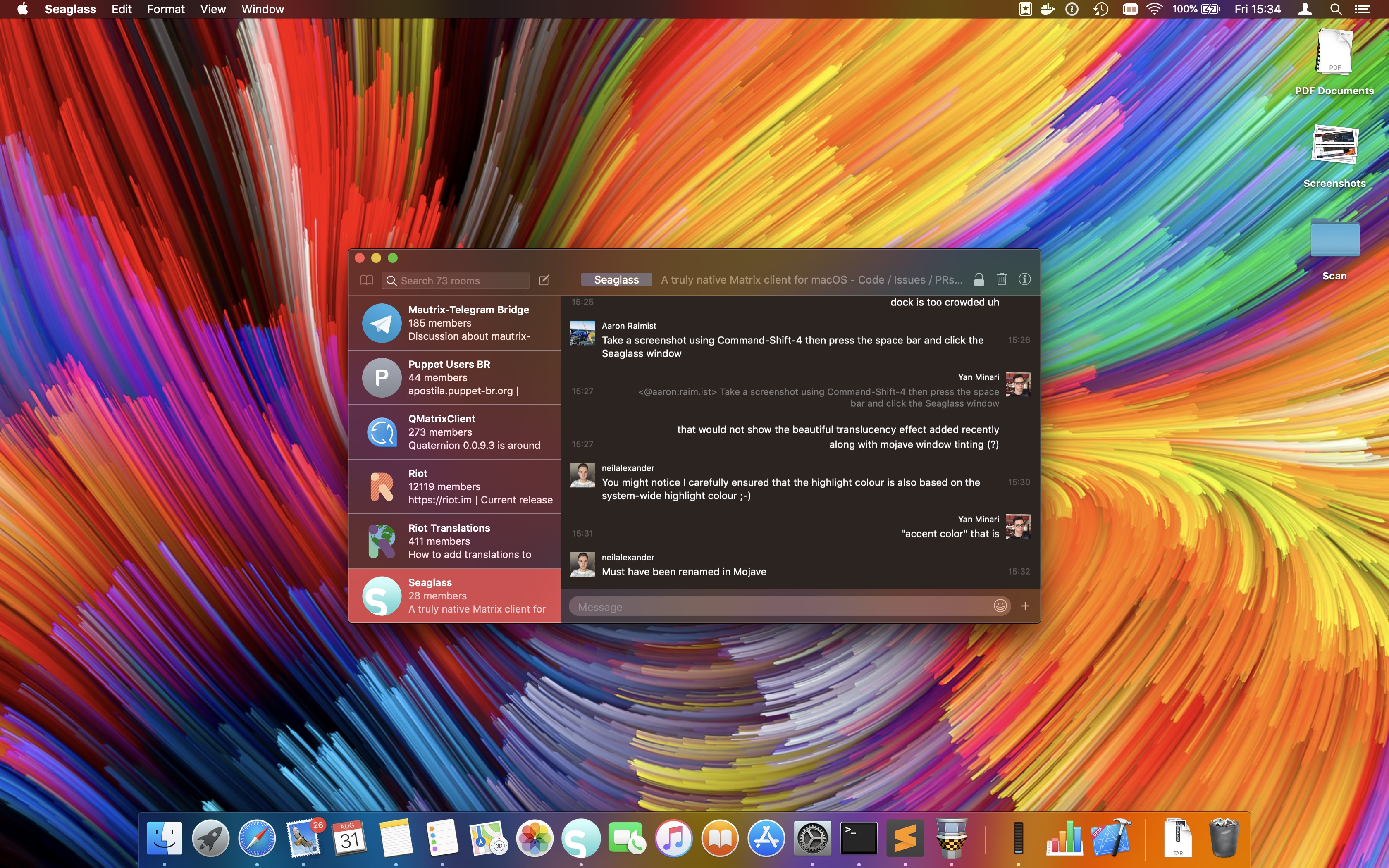 Fractal 3.29.92 got released and we are freezing strings to give GNOME translators a bit of time to complete translations for 3.30 next week. Latest developments include tweaks for the title bar, misc bug fixes, a new presentation for uploaded files (that are not images, those are still displayed inline) with buttons to download or open them. Development builds are now parallel installable for easier testing and CI has been improved.