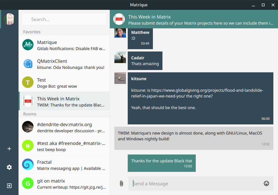 Fractal 3.30 got release alongside the rest of GNOME. It includes a bunch of new and updated translations, and redacted messages are now hidden.