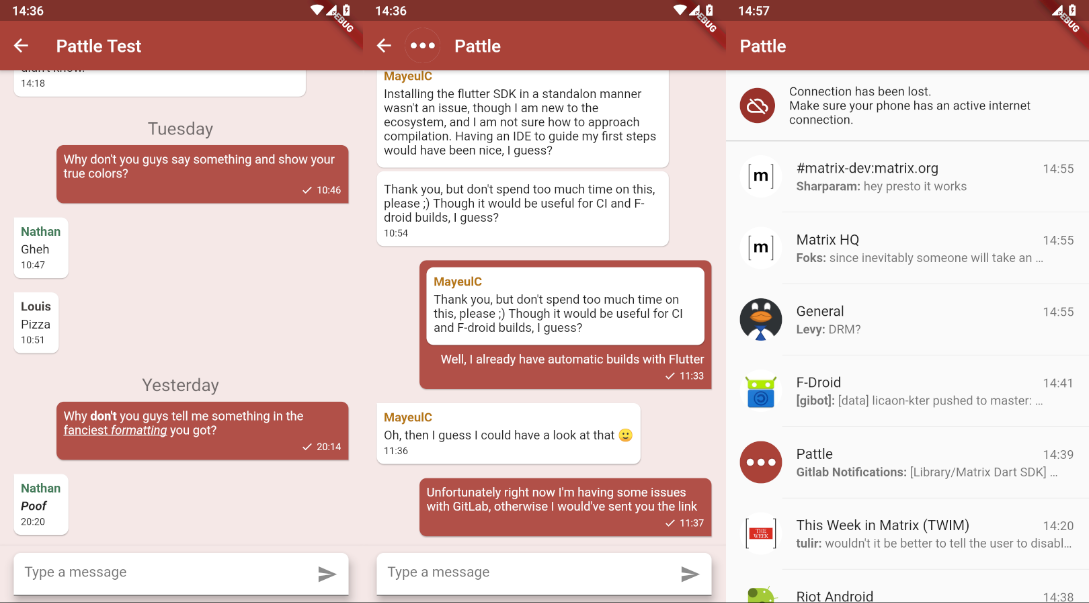 Progress has been made at the end2end encryption for FluffyChat. Qml bindings for the libolm library are mostly ready and the app can now create keys and upload keys to the server. Device tracking is now implemented too.