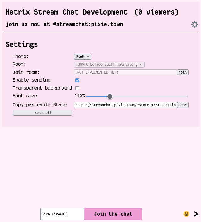 Matrix Streamchat got it's first alpha release, and was successfully set up + used by someone else this week Recorded a little demo video on the setup with OBS: https://youtu.be/HmJ3XwJXB7I, and implemented the GUI for configuring the chat's settings and looks, to then copy the link into an iframe (embedded chat) or OBS (overlay).