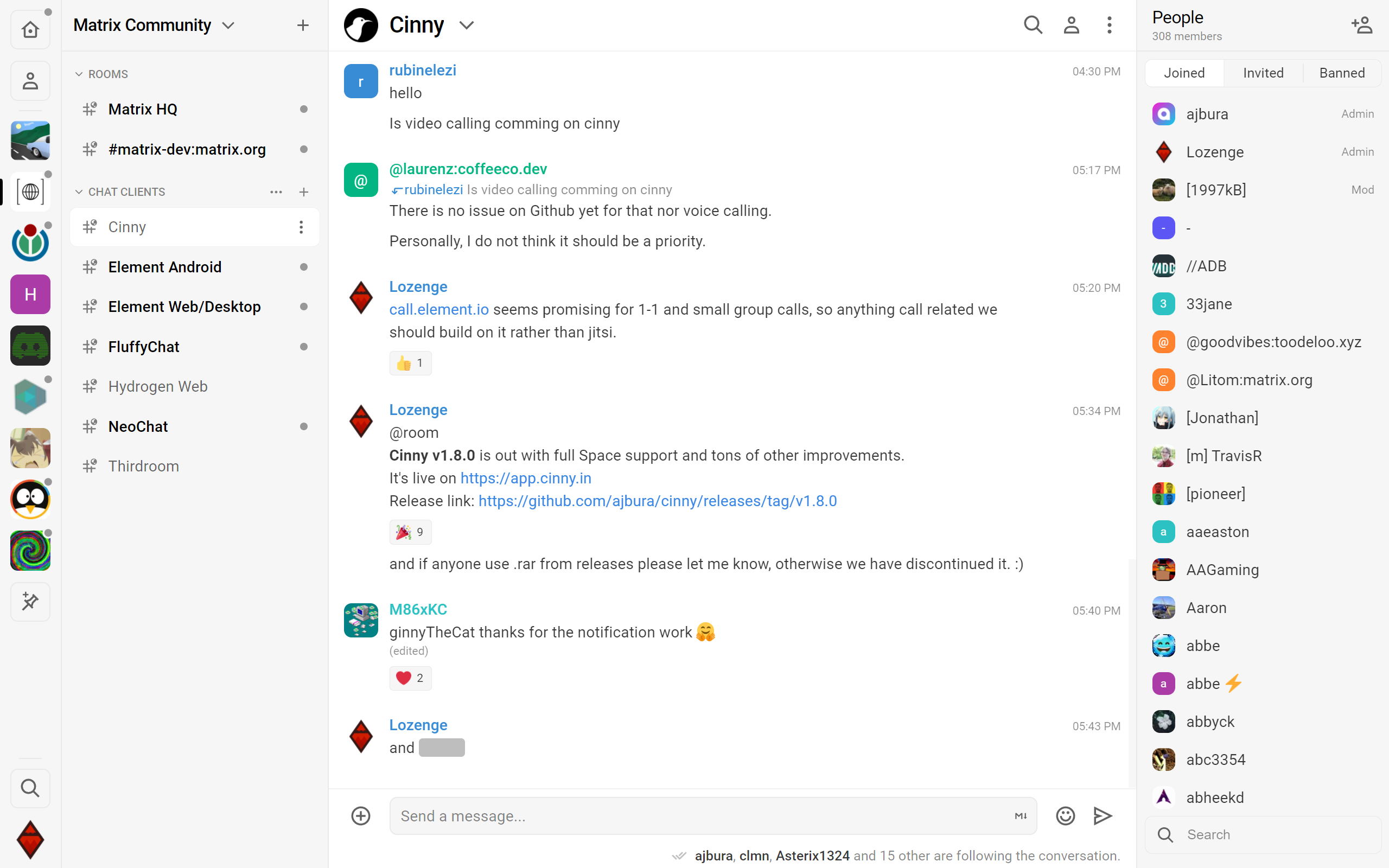 - Proper previews for unjoined rooms in spaces (on supported servers).