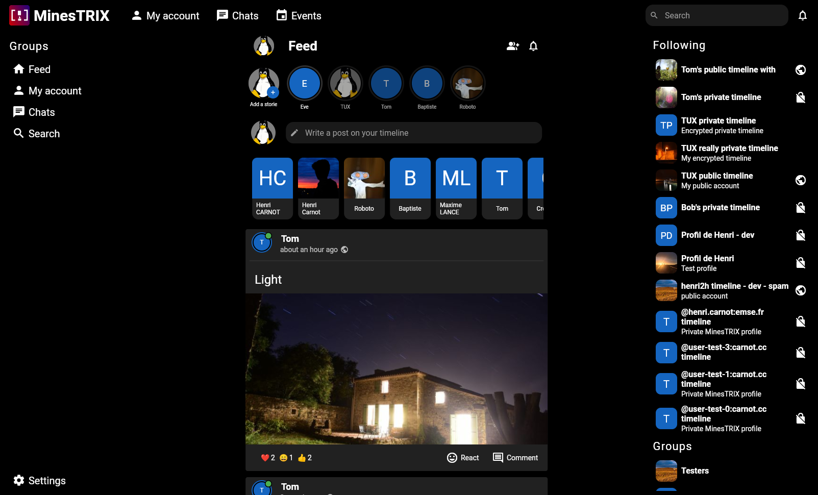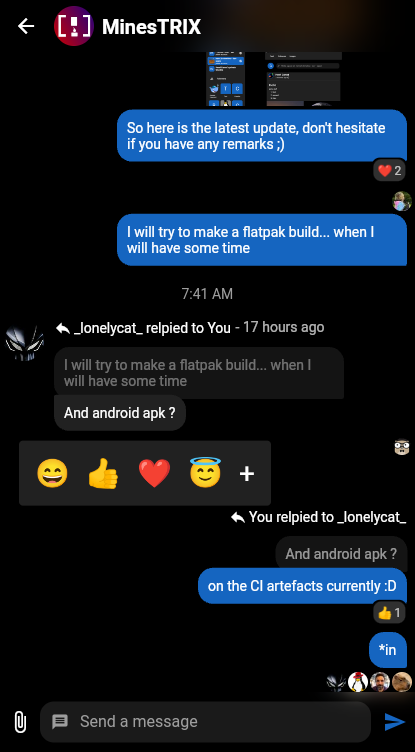 In a nutshell, we refactored the feed page and user page for a better viewing experience. We also now allow displaying and commenting post images in a dedicated view. Also, you can now send follow request using knocking, thanks to profile as space support. (Yes, MSC is coming)