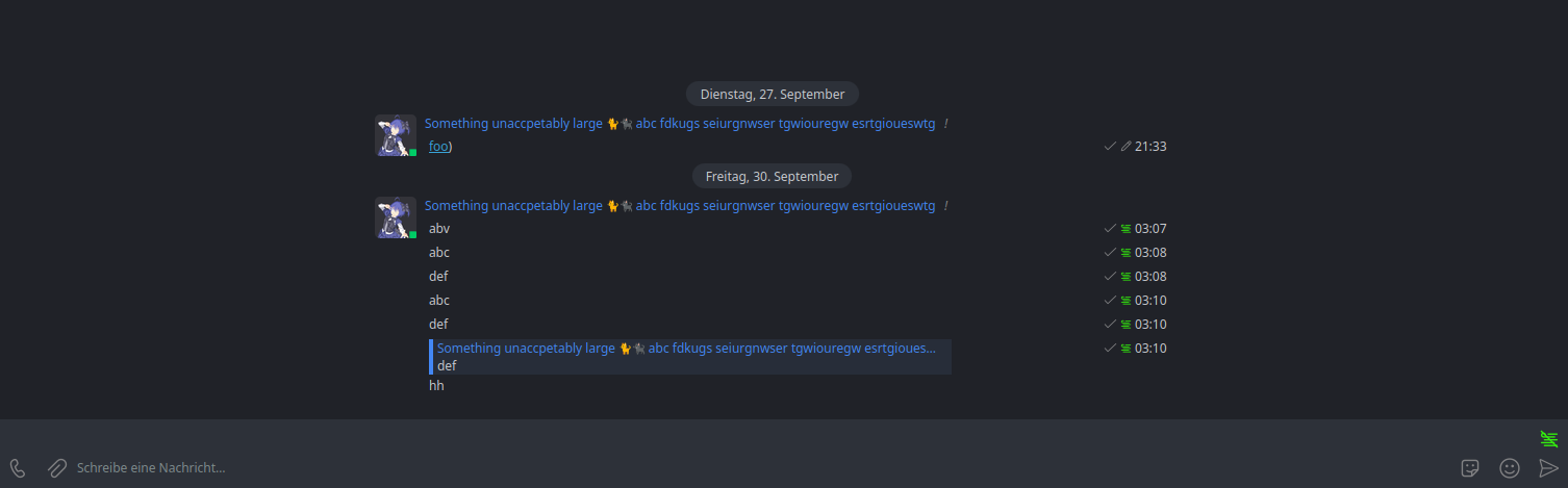 As part of the threading work if you click a thread indicator now, it will show you only that thread of conversation. And because we were already touching the timeline, you can now also search a room for messages containing your search query. Both of those things are not very fast right now and don't paginate backwards at the moment (if there are significant gaps), so take that feature with a grain of salt, but it at least exists now.
