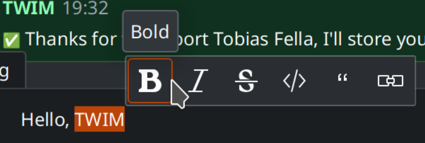 - James has added a formatting popup to the input field, allowing for quick addition of bold, cursive, etc.