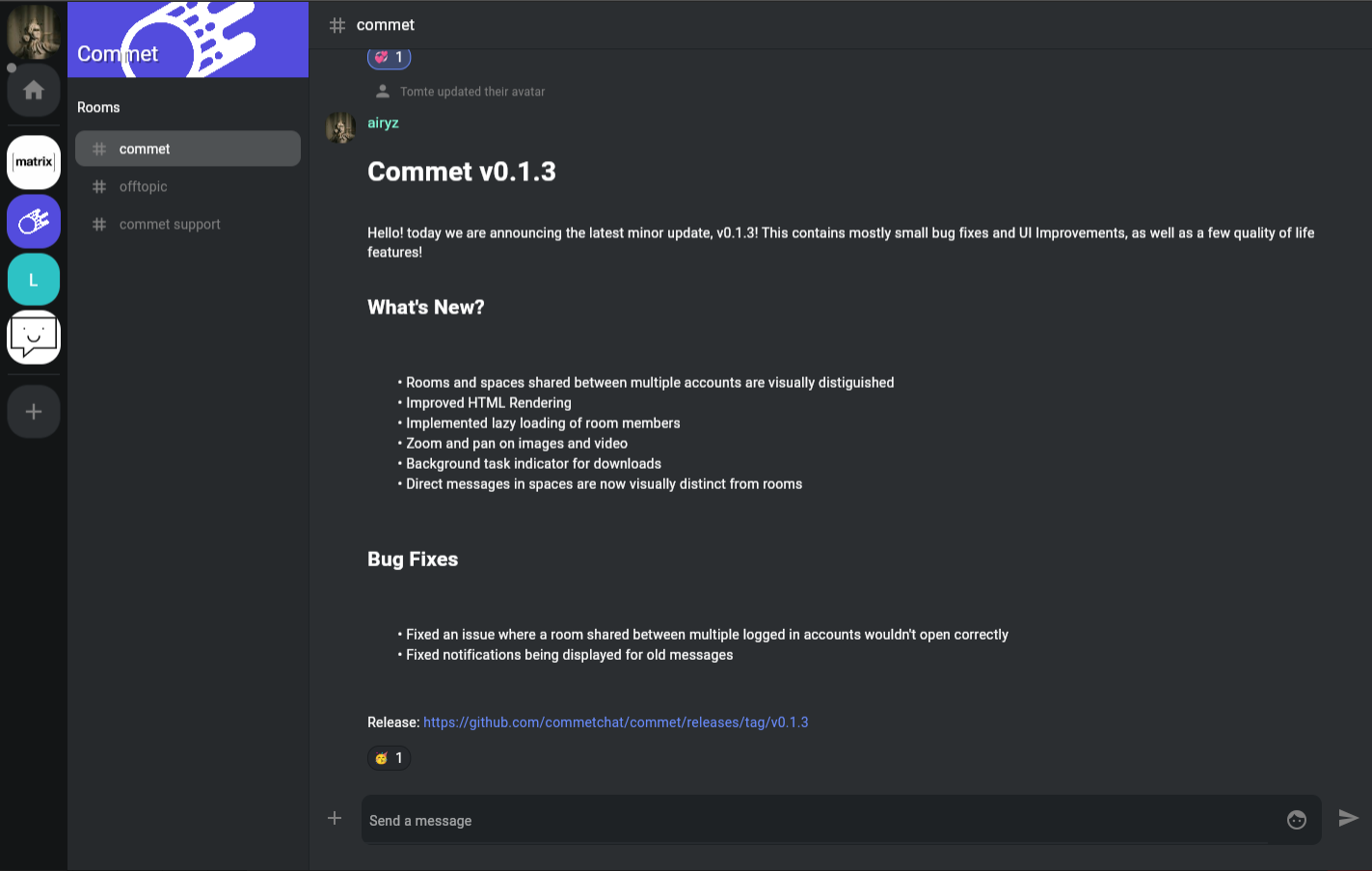 Release: https://github.com/commetchat/commet/releases/tag/v0.1.3