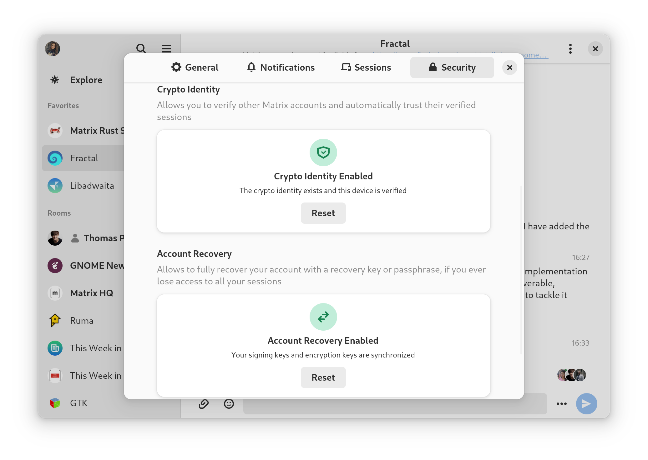 the brideFractal 7, with extended encryption support and improved accessibility. Server-side key backup and account recovery have been added, bringing greater security. Third-party verification has received some bug fixes and improvements. Amongst the many accessibility improvements, navigability has increased, especially in the room history. But thatβs not all weβve been up to in the past three months: